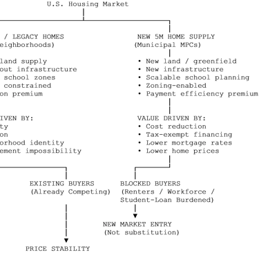 The 5-Million-Home Initiative treats housing as core economic infrastructure, not a speculative asset class. By aligning supply, labor, and capital at national scale, it simultaneously addresses affordability, job creation, workforce access, and fiscal sustainability.